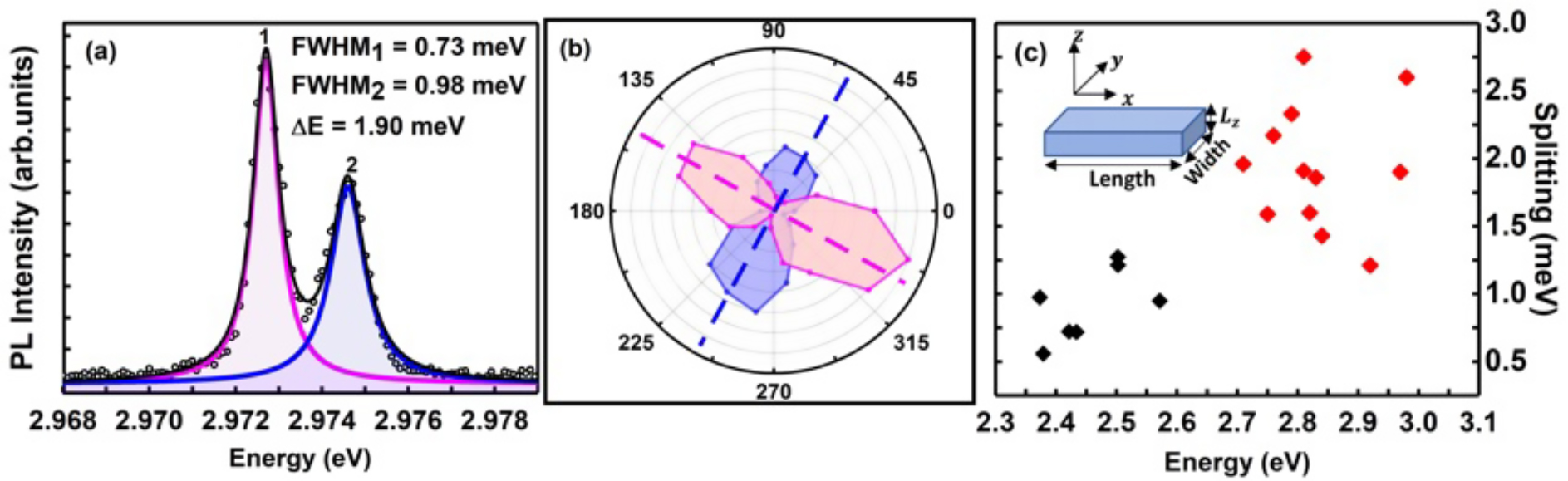 The PHOCOS[1] team has experimentally and theoretically studied the exciton emission of halide perovskite nanoplatelets, which can be regarded as quasi-two-dimensional quantum wells. A comprehensive model incorporating quantum confinement, dielectric effects, Coulombic interaction, and electron-hole exchange allows for the accurate reproduction of properties observed via optical spectroscopy and the simulation of the fine-structure of excitons as a function of the nanoplatelets size and shape.